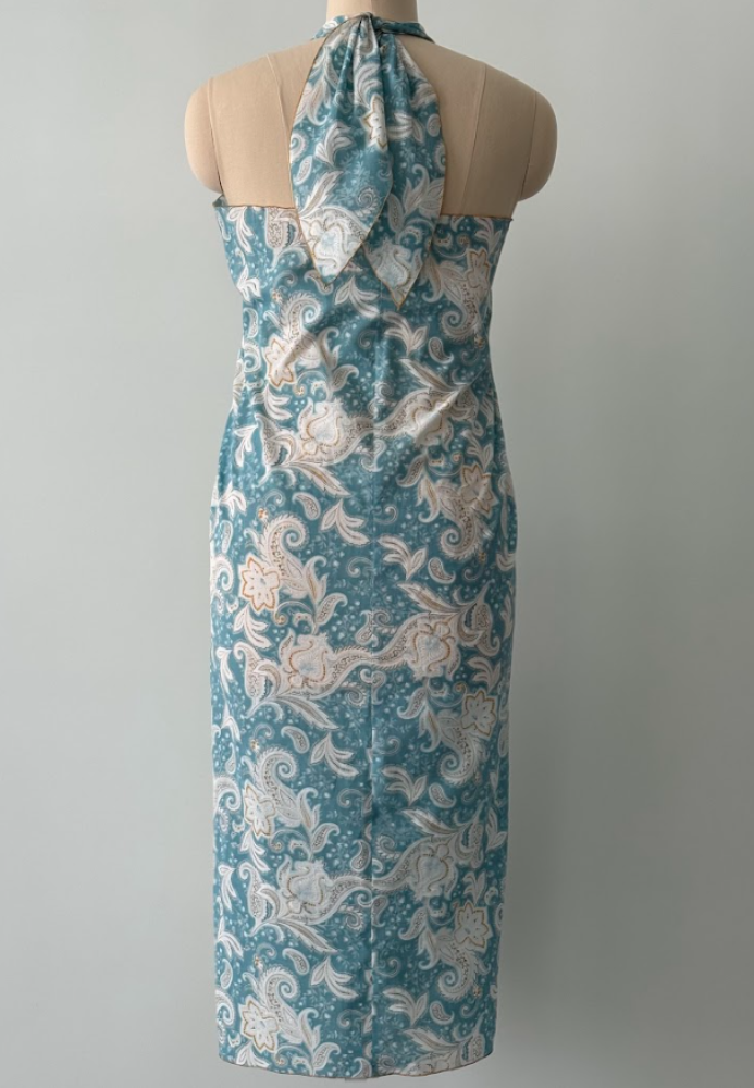 2 in 1, teal Sargon This one-meter piece of soft, breathable cotton features a vibrant teal summery pattern designed for versatile wear. It can be styled as a comfortable tie dress, a sleek halter dress, or wrapped traditionally as a sargon. Combining bold color with effortless style